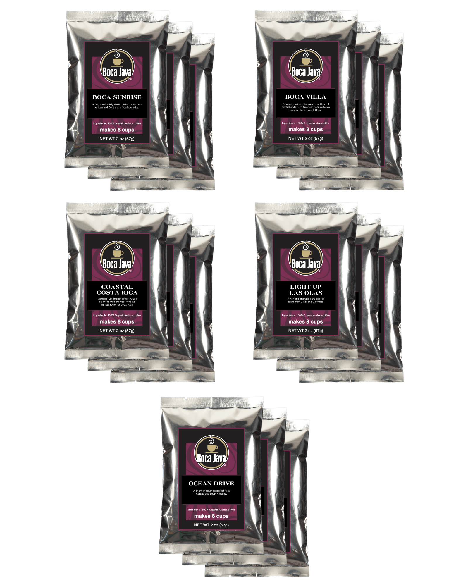 Enjoy the freshest coffee with Boca Java! Each bag is crafted to deliver exceptional flavor and the perfect cup, every time you brew.